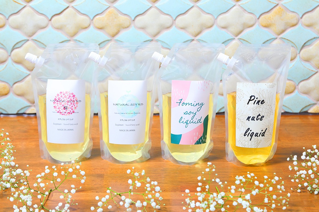①天然由来の大豆が原料 ② 除菌剤としても使えます③消臭効果もあります④泡立ちが少なく、すすぎが楽 ⑤ 約1週間で98.4%生分解され自然に還ります⑥大豆脂肪酸が素材をコーティングして汚れの再付着を防止します。 ⑦イソフラボンやビタミンE配合で、手荒れしにくく素手での作業が可能 ナチュラルソイリッドは、これ一本で除菌剤や消臭剤、洗剤としてご利用いただけます。